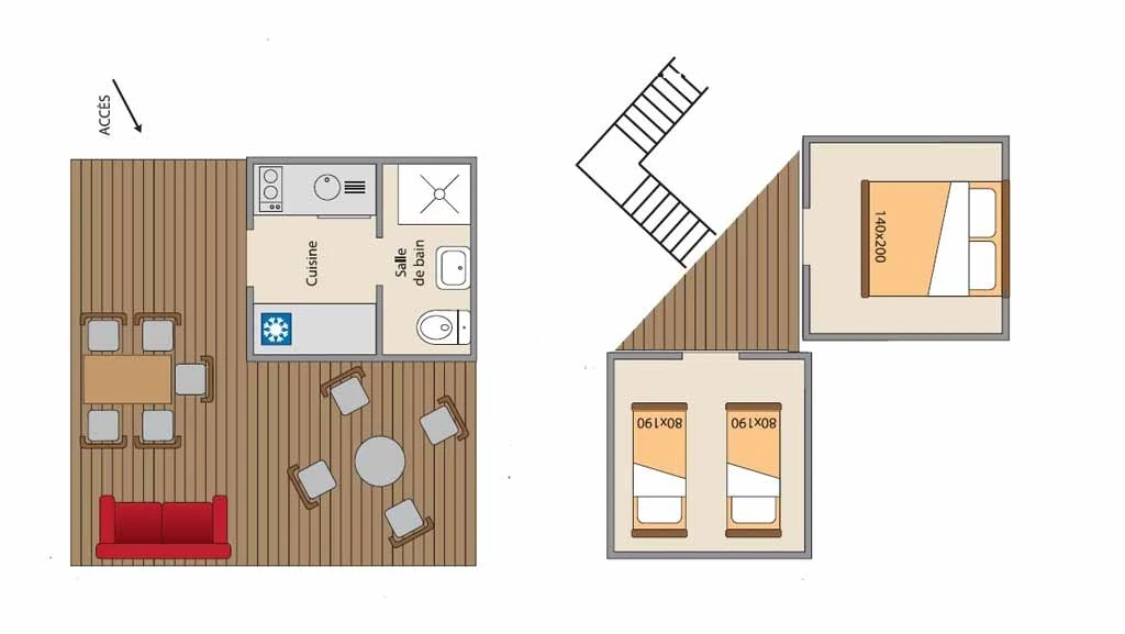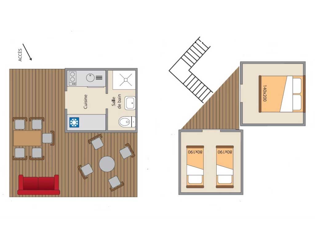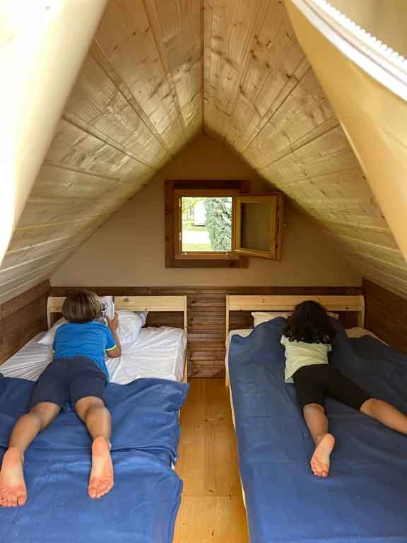 - Les lodges se situent dans un espace piéton, possibilité de décharger vos affaires uniquement. Stationnement à l'entrée du camping sur le parking extérieur.