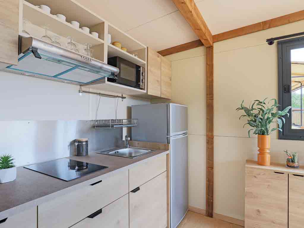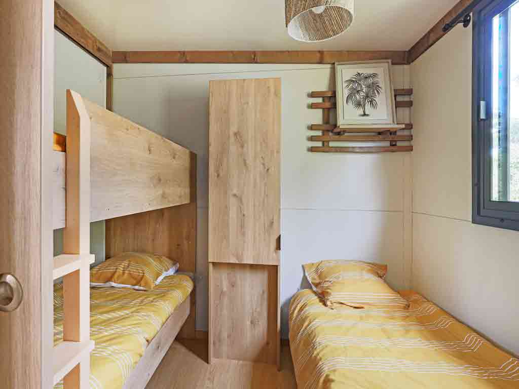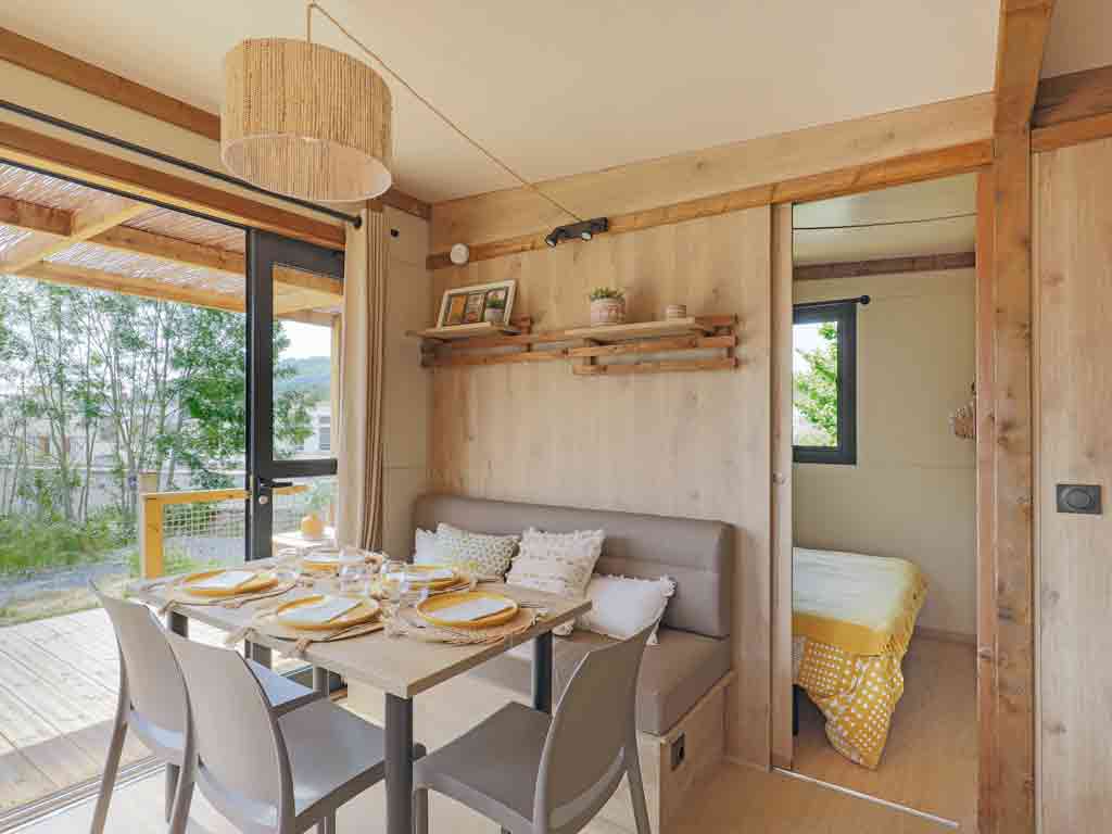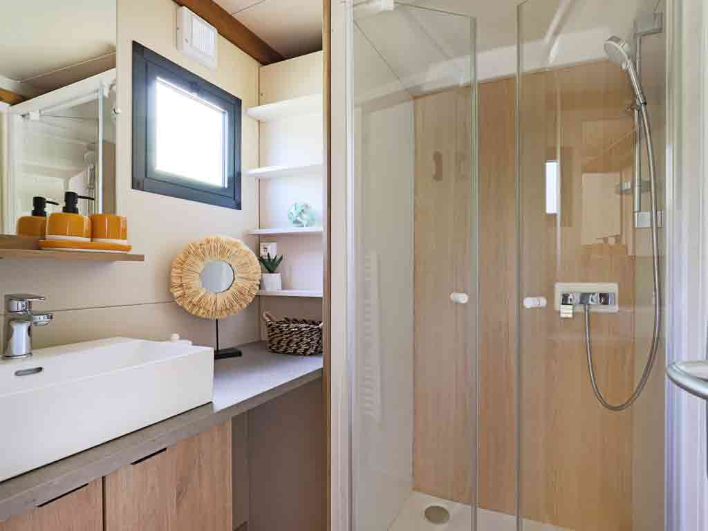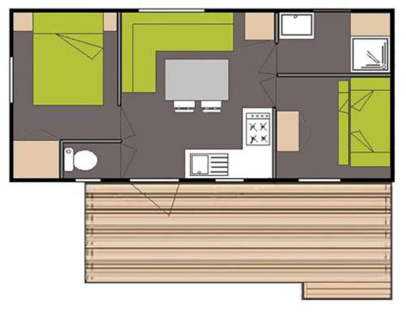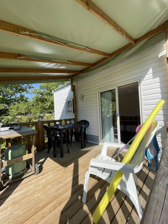 Le camping vous propose des mobiles home fonctionnels et confortables pour des vacances réussies. Avec ou sans climatisation, nos modèles sont équipés de 2 chambres avec cuisine et salle de douche avec une jolie terrasse en bois où vous pourrez profiter de la jolie vue sur les montagnes.